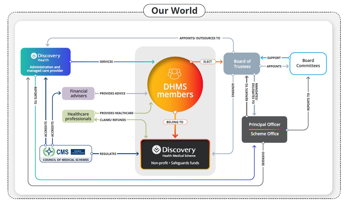 DHMS is a registered medical scheme, and like all other medical schemes in South Africa is a non-profit entity. The Scheme pools all members' contributions to fund members' claims. Any surplus funds are transferred to Scheme reserves for the benefit of members. The Scheme exists to serve its members' interests through enabling the sustainable provision of high-quality, affordable and sustainable healthcare to all of its members.