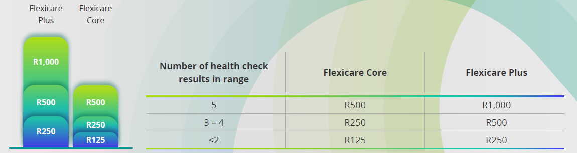 Every year, each adult member can earn up to R1,000 in their FlexiFund based on their health check results. A health check includes: