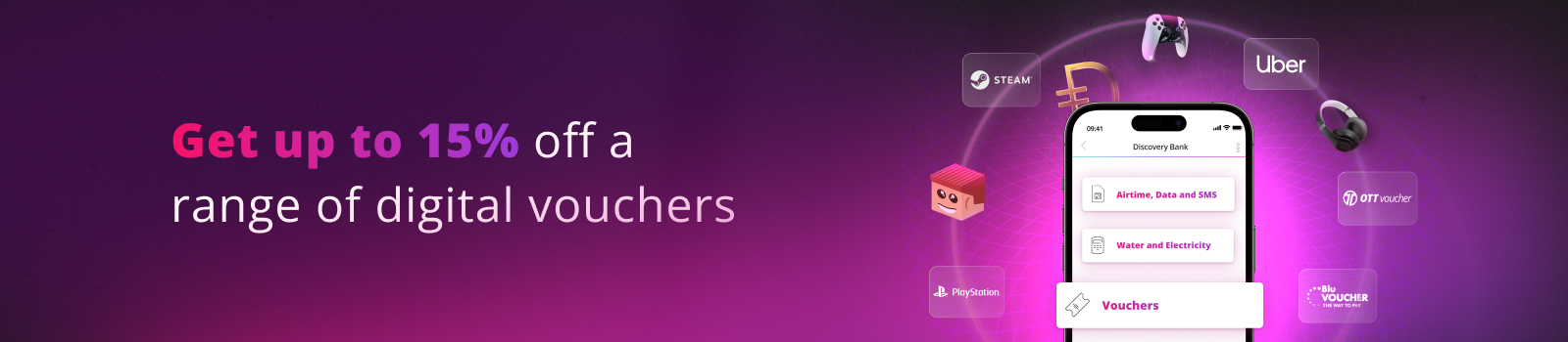 Get a wide range of digital vouchers in your Discovery Bank app