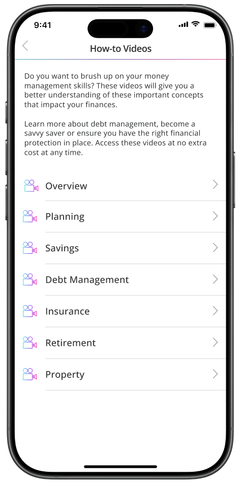 We've put together a series of videos to help you understand and improve your financial behaviours so you can earn more Vitality Money points and get a higher Vitality Money status.