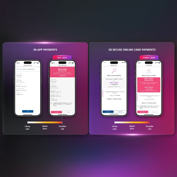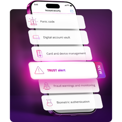 To keep you a step ahead, we're adding TRUST™ alert to empower you when you're transacting. TRUST alert uses pattern data and instant analysis of security threats to give you a pre-payment check that scores every in-app and 3D Secure payment transaction's risk in real time - because keeping your money safe is a priority for us.