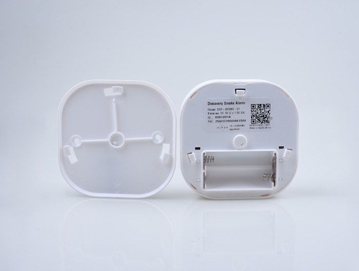 - Put two AA alkaline batteries into the smoke detector.