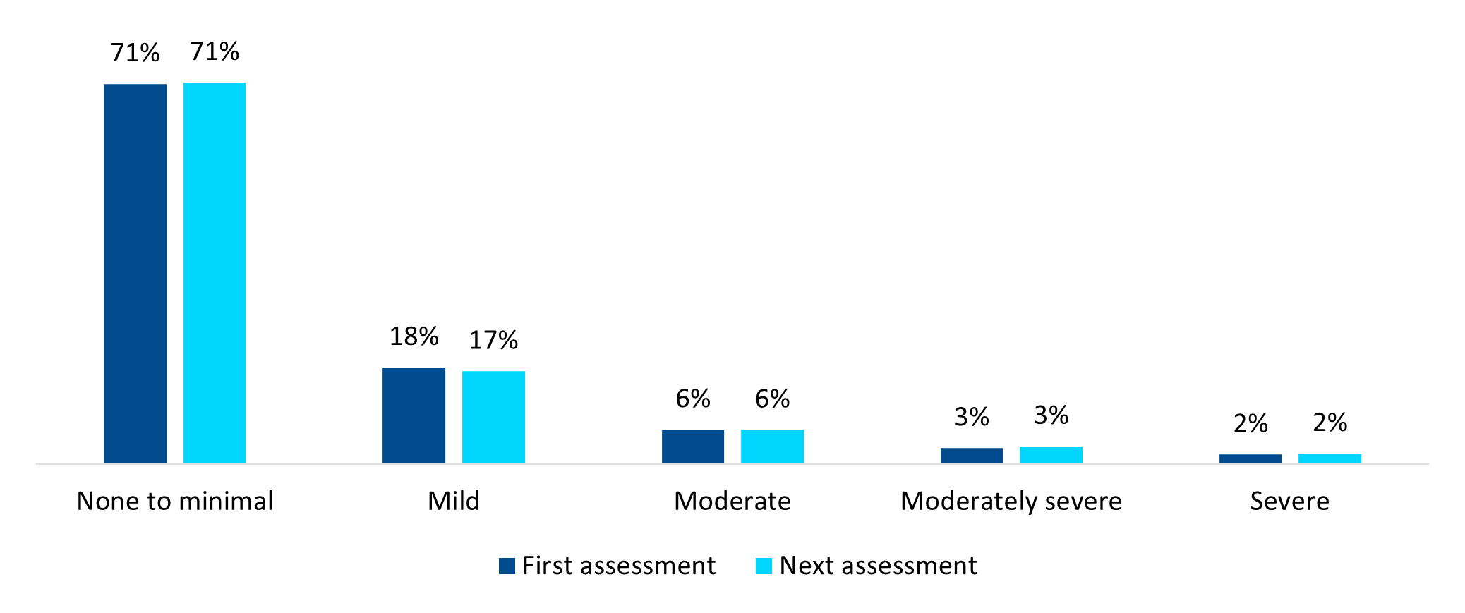 Figure 2: Proportion of PHQ‑9 assessments with mild, moderate or severe symptoms of depression
