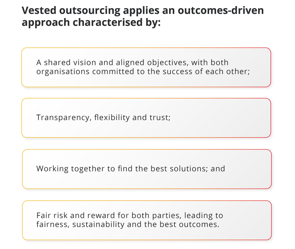 The Vested outsourcing model aligns the transactional and relational governance elements of this relationship with global outsourcing best practice.