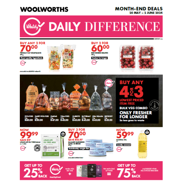 Woolworths has created The Daily Difference with Vitality only products to make it even easier for you to choose HealthyFood that tastes good. Download The Daily Difference today and start eating healthily, the Vitality way!