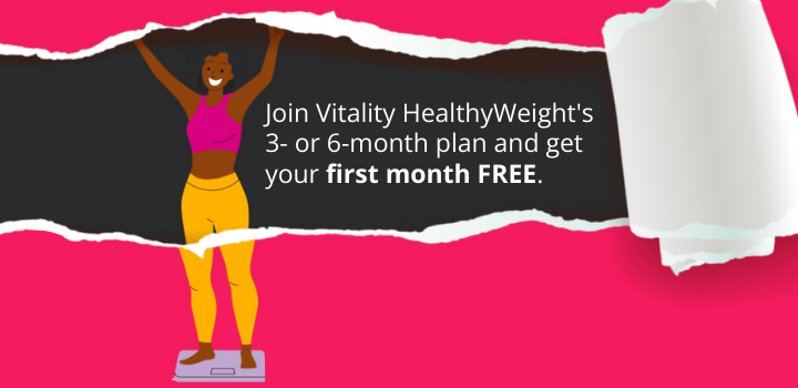 Still thinking about losing or managing your weight? While you're weighing your options, we've decided to give you the first month of the Vitality HealthyWeight programme on us. But hurry... this special offer expires on 4th August 2023!