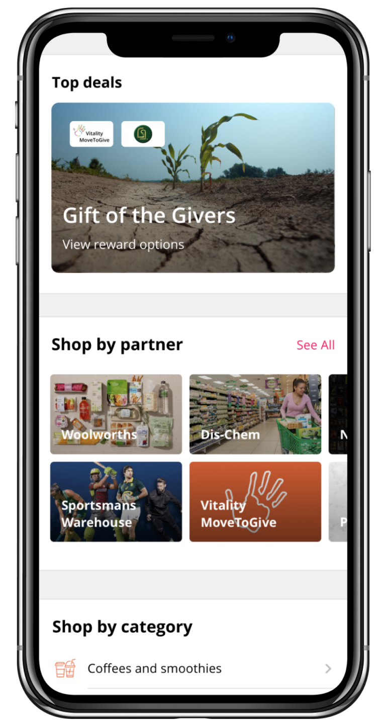One of your reward options is Vitality MoveToGive charity donations where you can donate from as little as Ð200 (R20) to selected charitable organisations.
