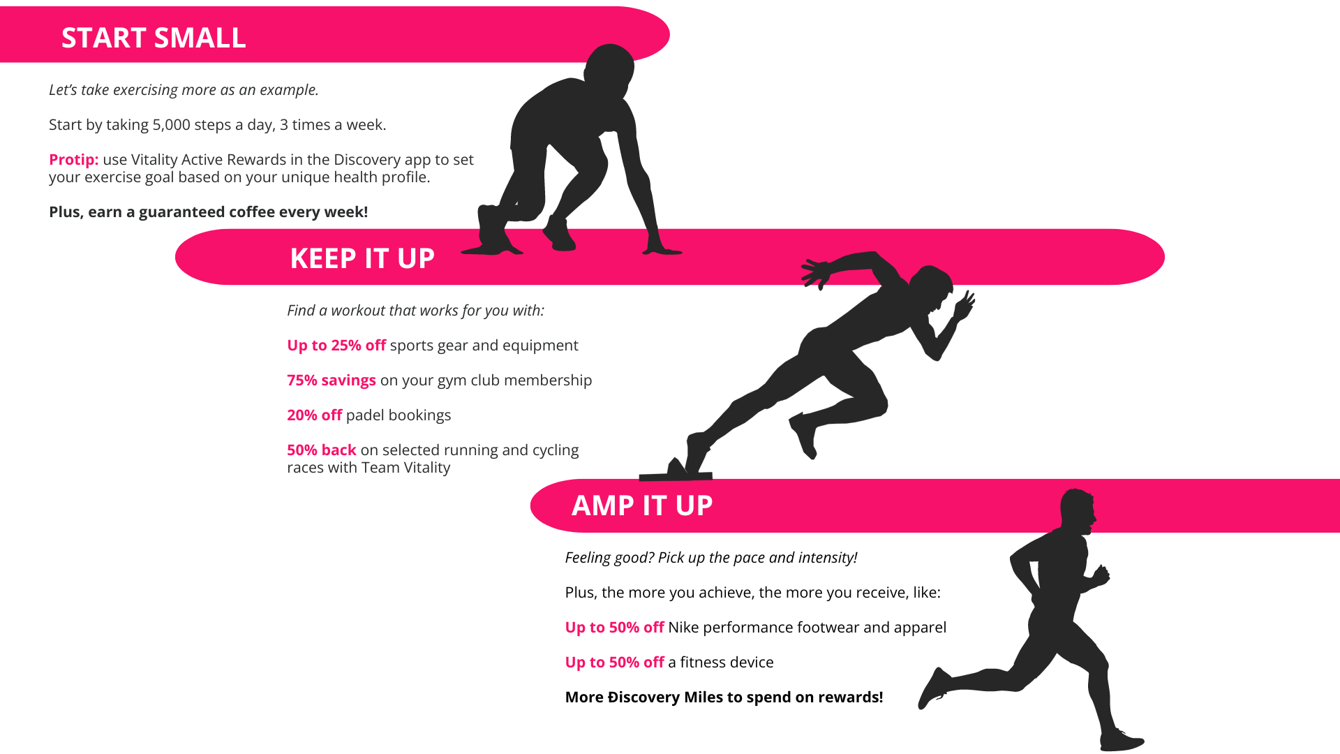 Live life with Vitality and get all the behaviour-change tips, rewards and incentives you need to build healthy habits like a boss.
